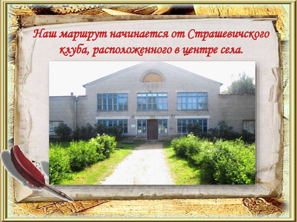 Наш маршрут начинается от Страшевичскогоклуба, расположенного в центре села.