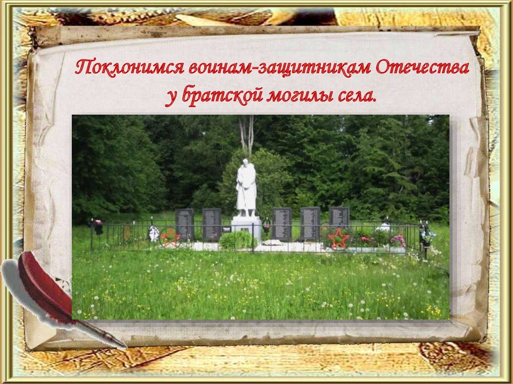 Поклонимся воинам-защитникам Отечествау братской могилы села.