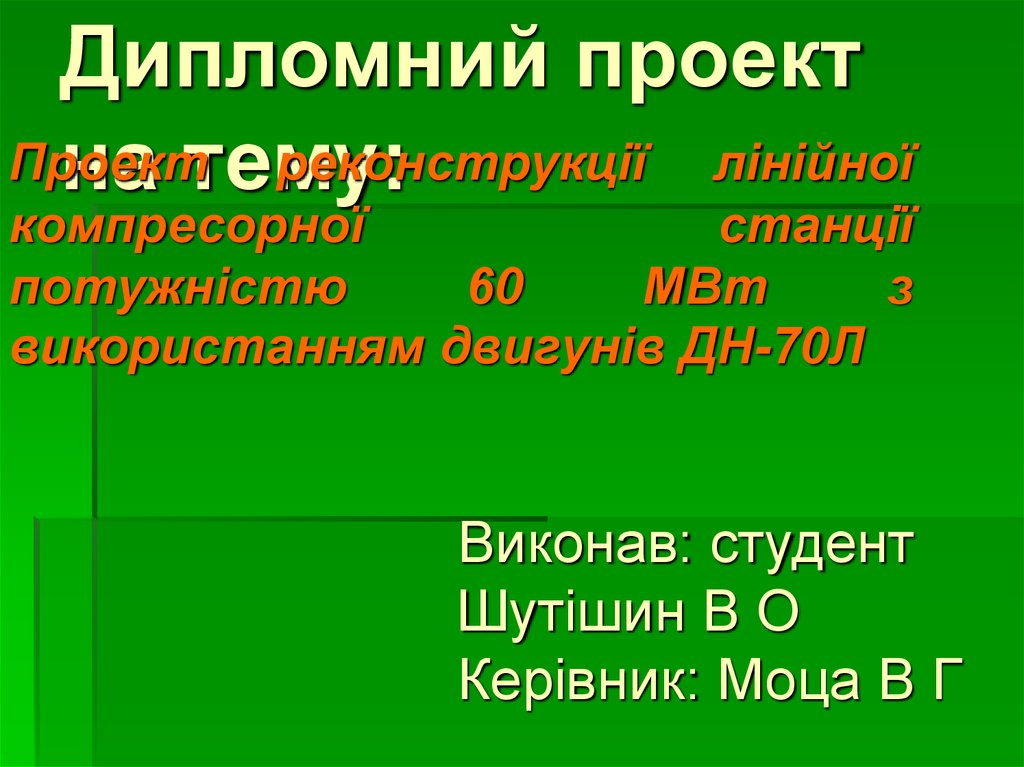Проект реконструкції лінійної компресорної станції потужністю 60 МВт з використанням двигунів ДН-70Л