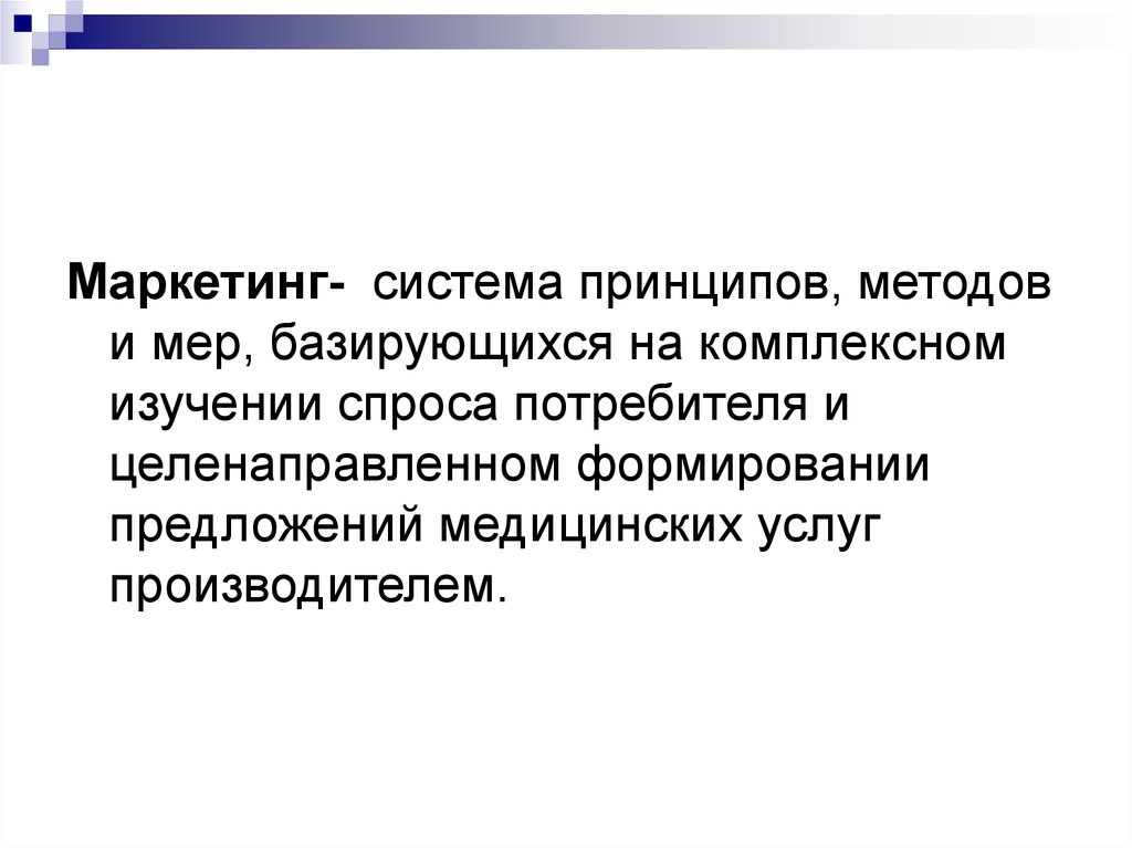 Маркетинг- система принципов, методови мер, базирующихся на комплексном