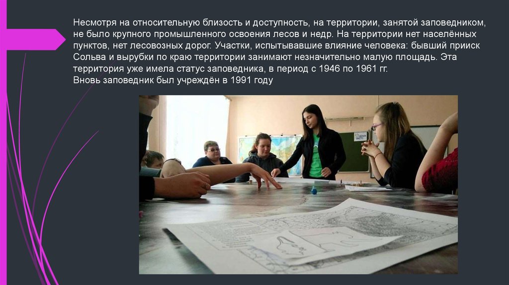 Несмотря на трудности периода распада Советского государства, новый коллективзаповедника "Денежкин Камень" успешно принял эстафету в деле охраны природы и научных