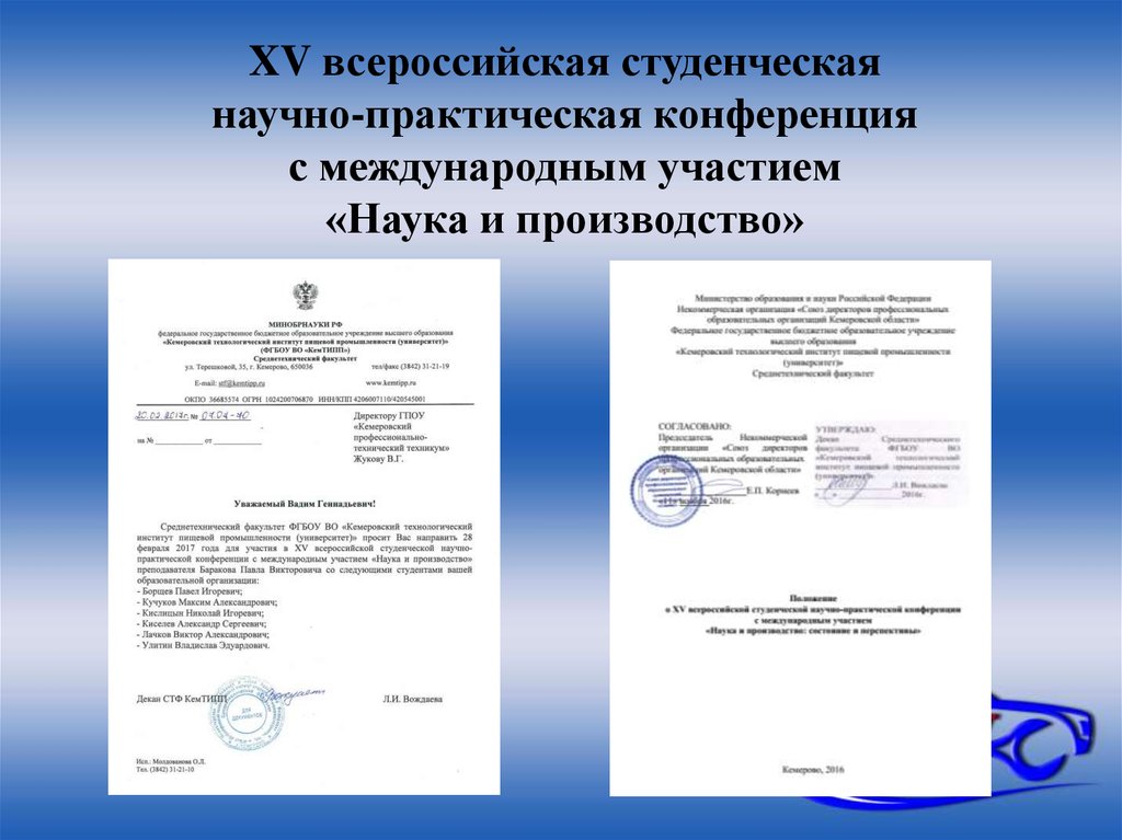 XV всероссийская студенческая научно-практическая конференция с международным участием «Наука и производство»