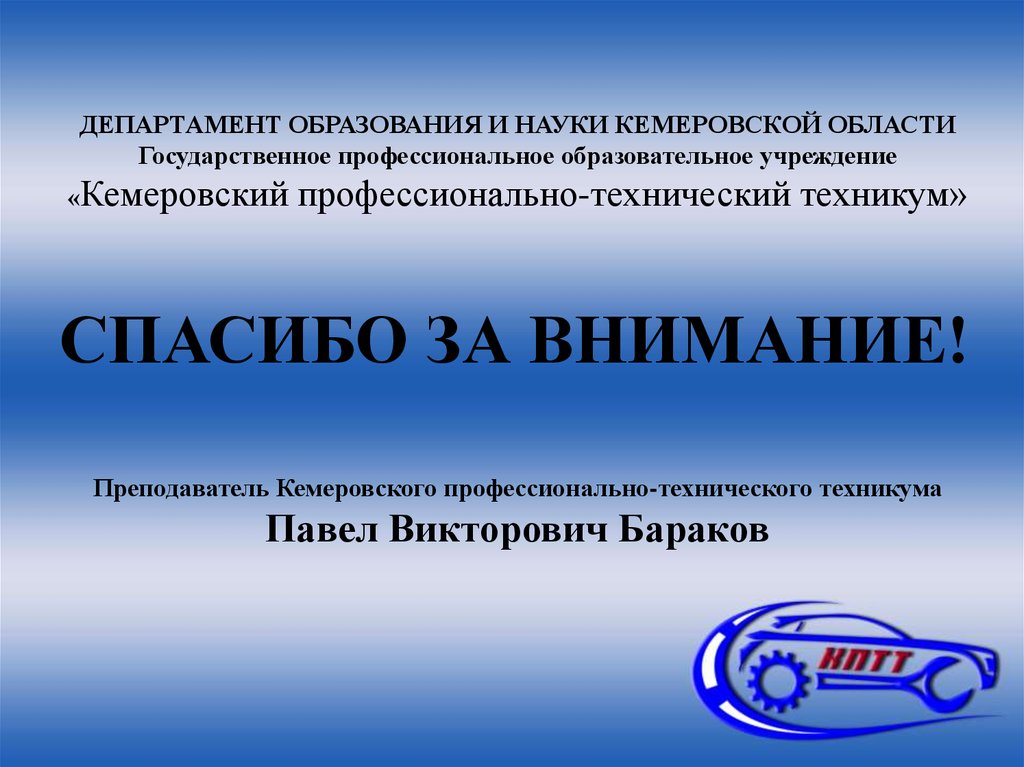 ДЕПАРТАМЕНТ ОБРАЗОВАНИЯ И НАУКИ КЕМЕРОВСКОЙ ОБЛАСТИГосударственное профессиональное образовательное учреждение