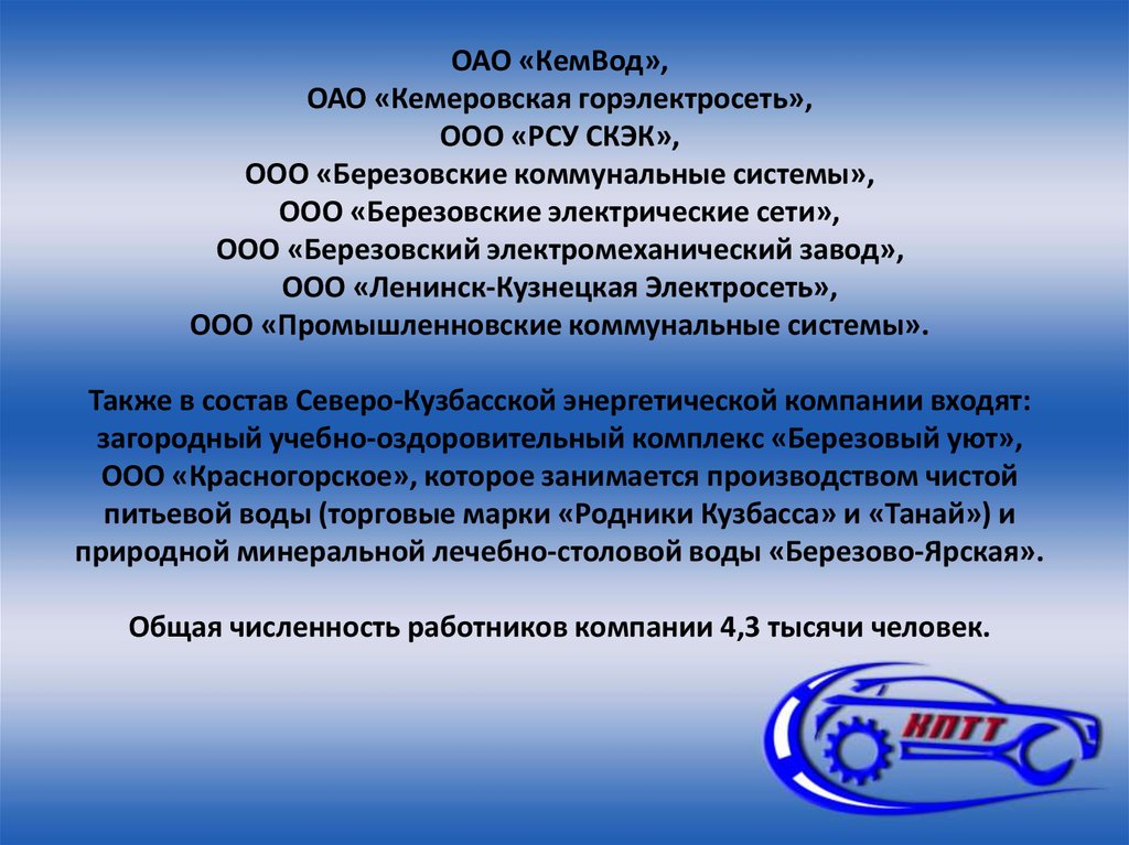 Также в состав Северо-Кузбасской энергетической компании входят: