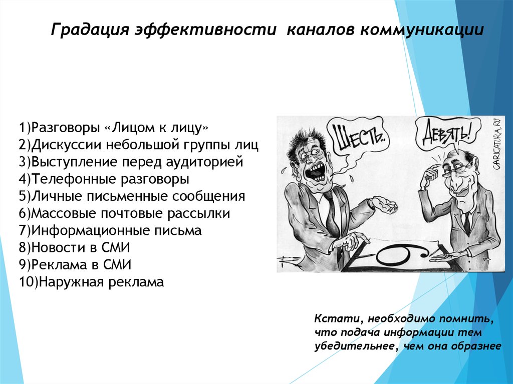 Градация эффективности каналов коммуникации1)Разговоры «Лицом к лицу»
