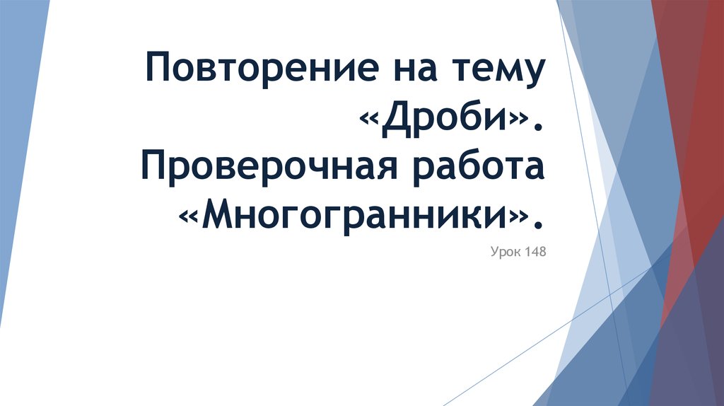 1. Повторение на тему «Дроби». Проверочная работа «Многогранники».