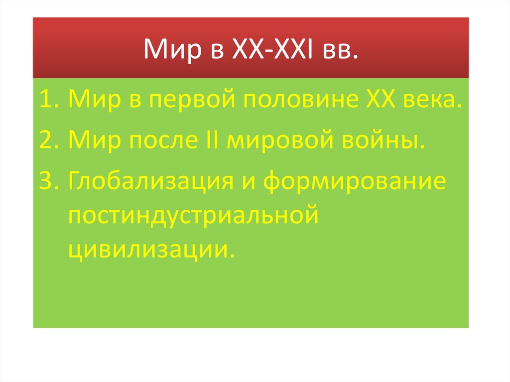 1. Мир в первой половине ХХ века.2. Мир после II мировой войны.