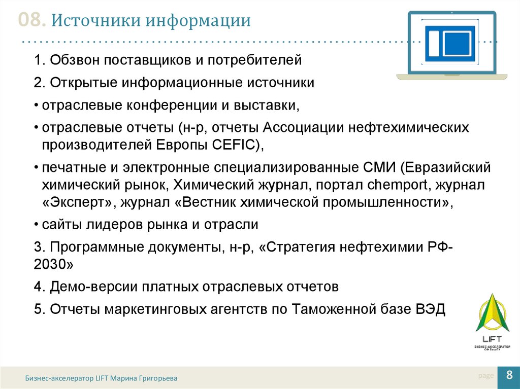 • отраслевые отчеты (н-р, отчеты Ассоциации нефтехимических