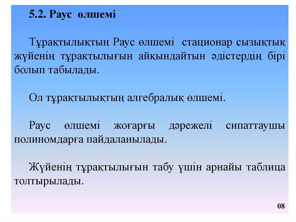 5 дәрісБасқару жүйесінің тұрақтылығы