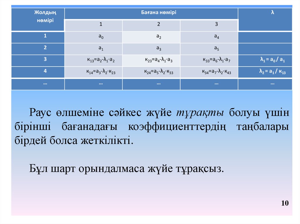 5.1. Алгебралық критерийлер арқылытұрақтылықты талдау