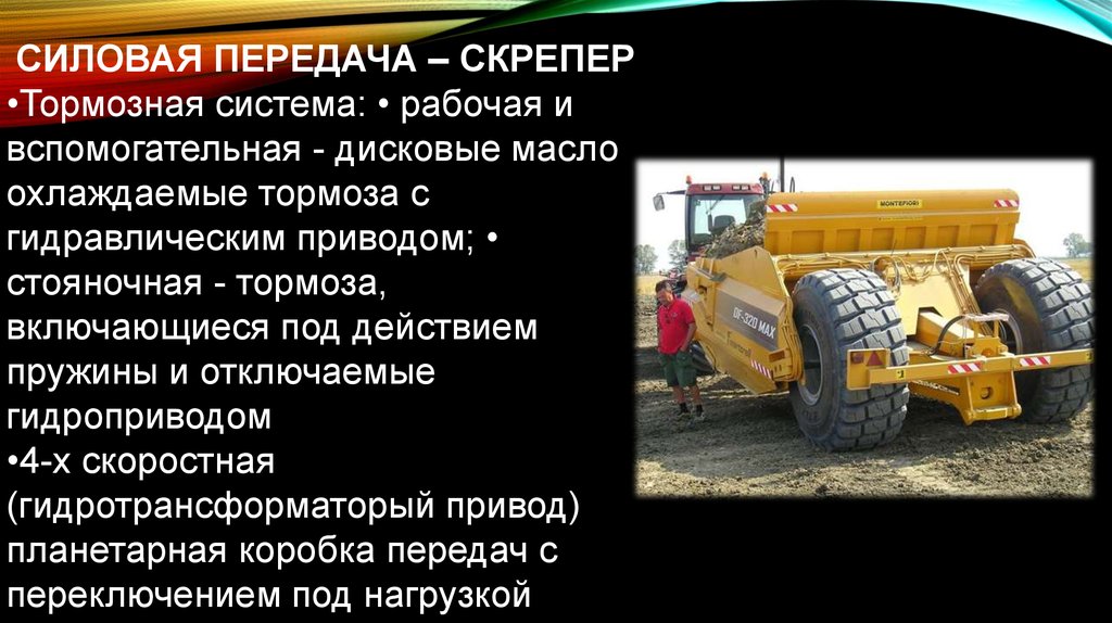 СИЛОВАЯ ПЕРЕДАЧА – СКРЕПЕР•Тормозная система: • рабочая и