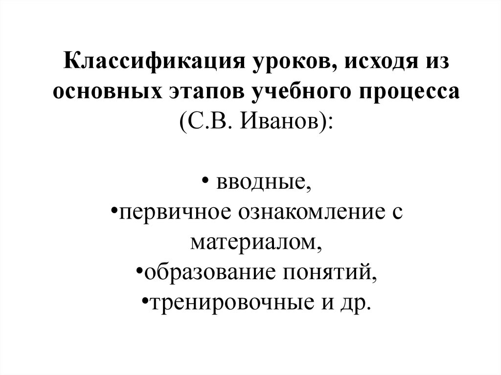 Классификация уроков, исходя изосновных этапов учебного процесса