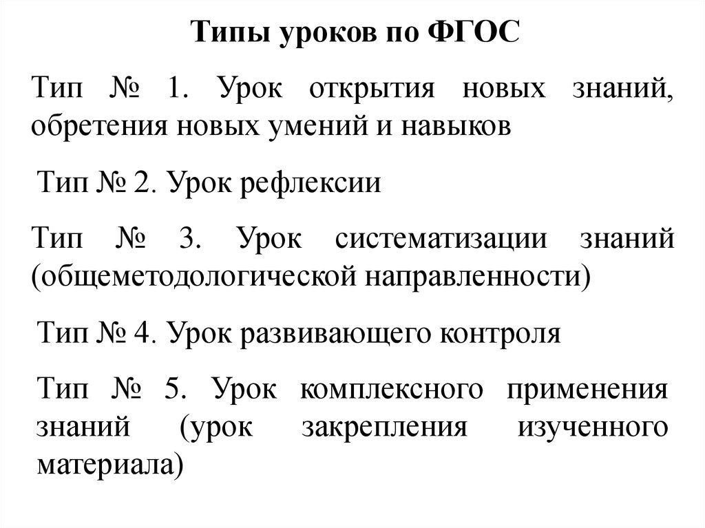 Типы уроков по ФГОСТип № 1. Урок открытия новых знаний,
