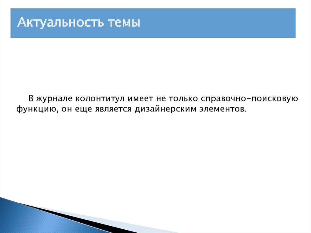 Актуальность темыВ журнале колонтитул имеет не только справочно-поисковую