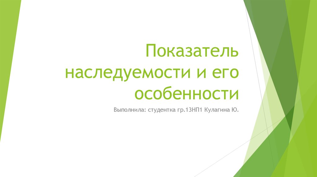 Выполнила: студентка гр.13НП1 Кулагина Ю.2. Показатель наследуемости в количественной генетике и генетике поведения