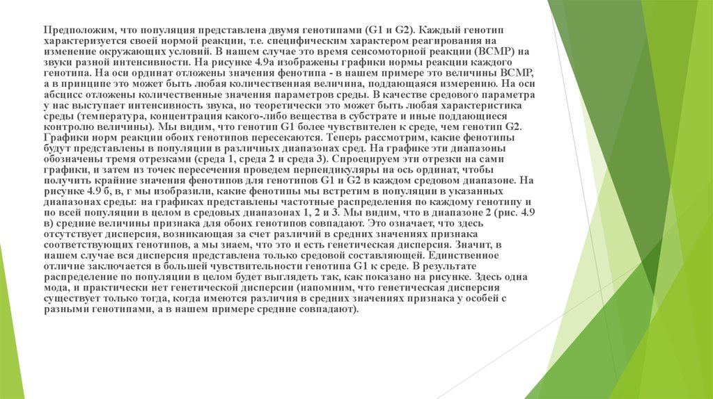 Предположим, что популяция представлена двумя генотипами (G1 и G2). Каждый генотипхарактеризуется своей нормой реакции, т.е. специфическим характером реагирования на