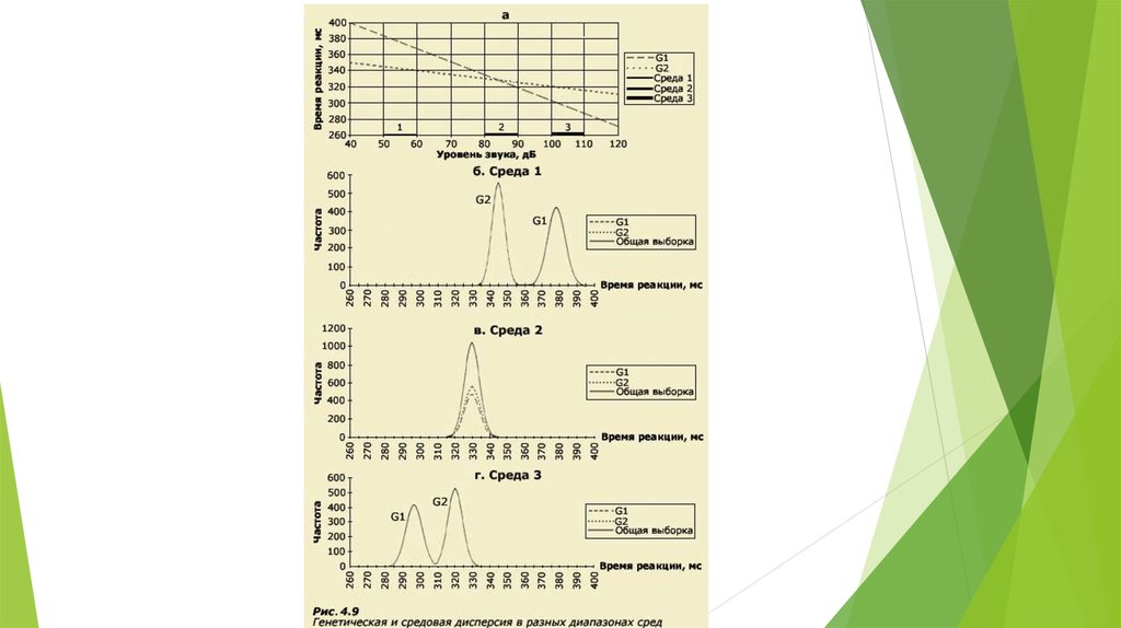 звуки разной интенсивности. На рисунке 4.9а изображены графики нормы реакции каждого