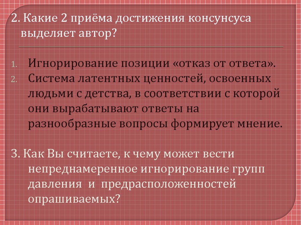 Приёмы, с помощью которых достигаетсяэффект консенсуса:
