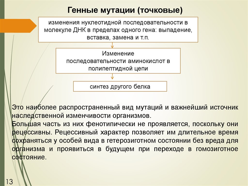 Генные мутации (точковые)изменения нуклеотидной последовательности в