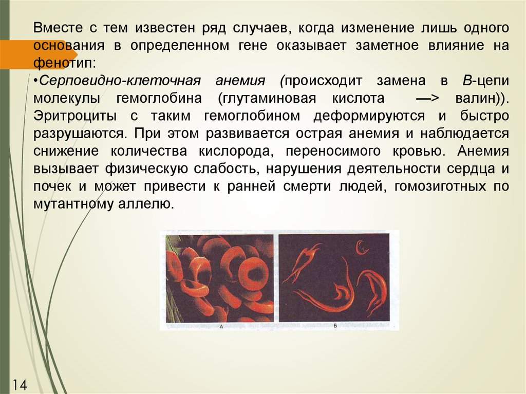 Вместе с тем известен ряд случаев, когда изменение лишь одногооснования в определенном гене оказывает заметное влияние на