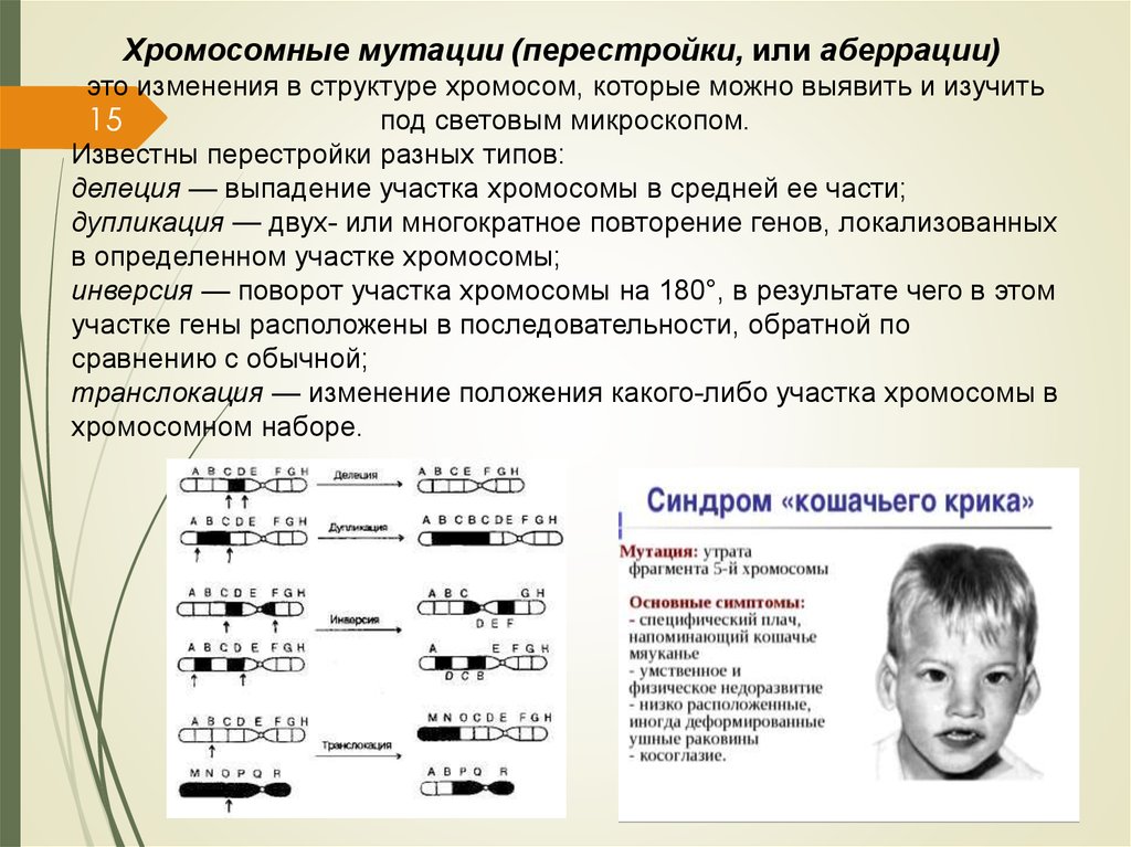 Хромосомные мутации (перестройки, или аберрации)это изменения в структуре хромосом, которые можно выявить и изучить