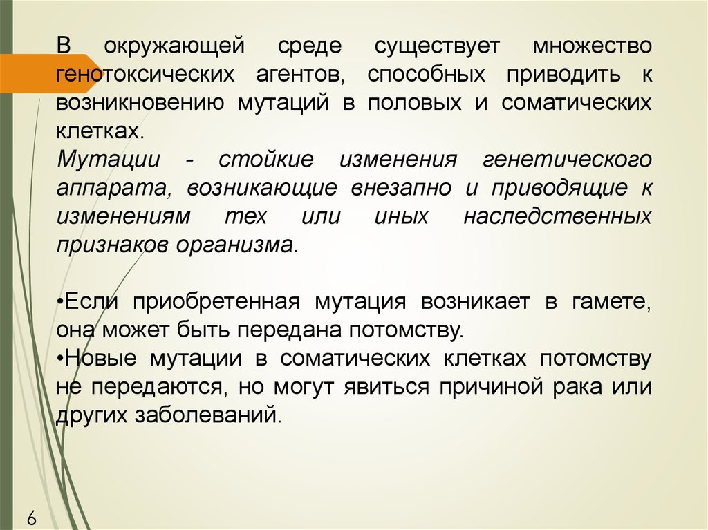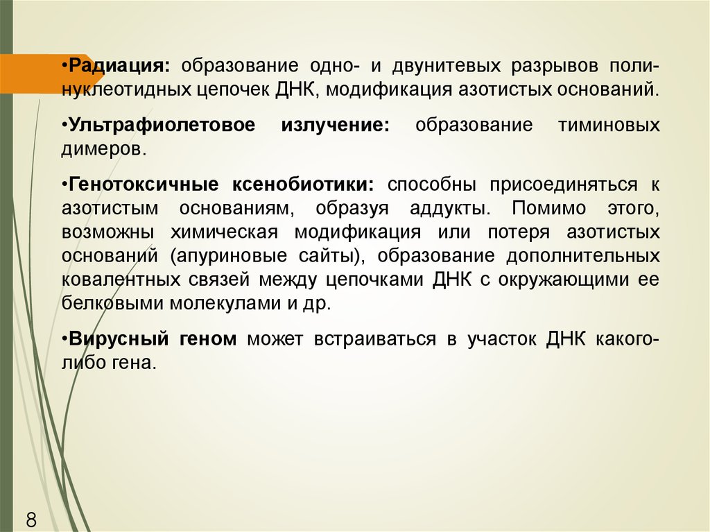 В окружающей среде существует множествогенотоксических агентов, способных приводить к