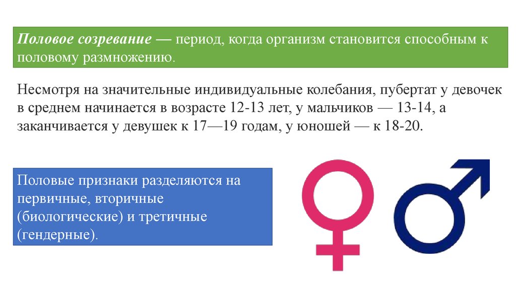 Половое созревание — период, когда организм становится способным кполовому размножению.