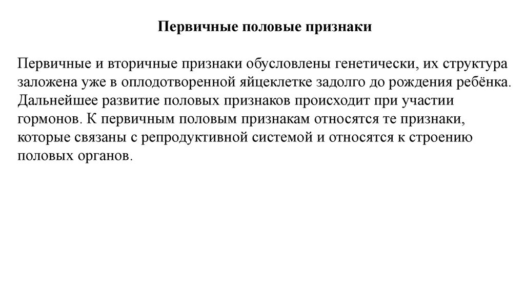 Первичные половые признакиПервичные и вторичные признаки обусловлены генетически, их структура