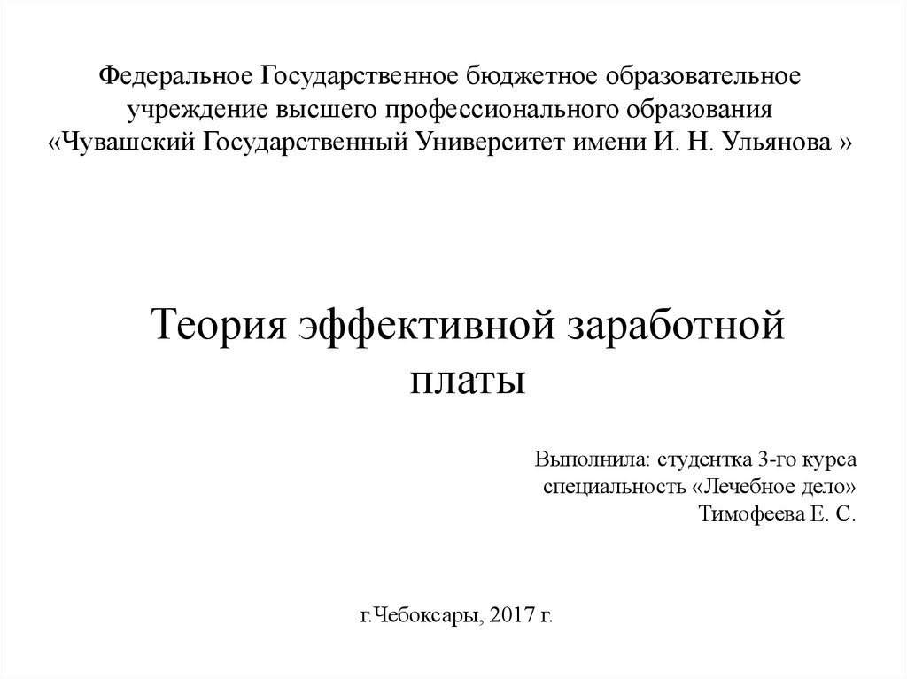 1. Федеральное Государственное бюджетное образовательное учреждение высшего профессионального образования «Чувашский Государственный Ун