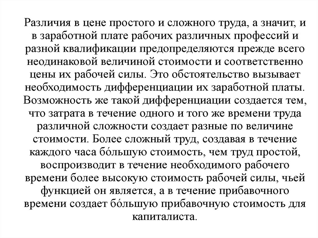 Различия в цене простого и сложного труда, а значит, ив заработной плате рабочих различных профессий и