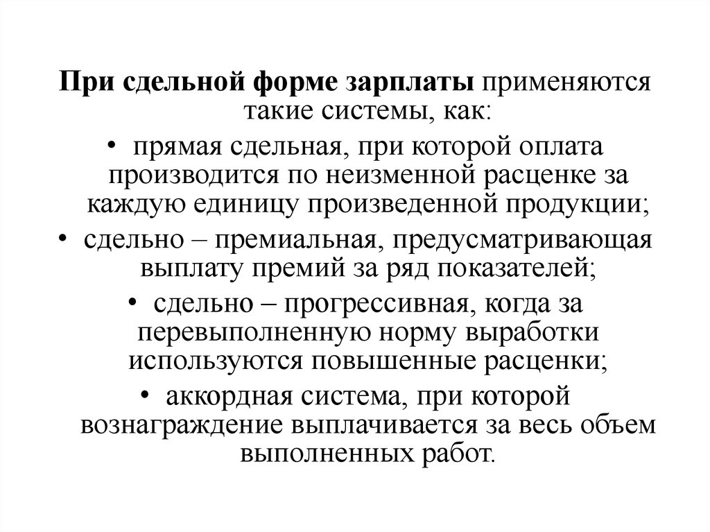 При сдельной форме зарплаты применяютсятакие системы, как: