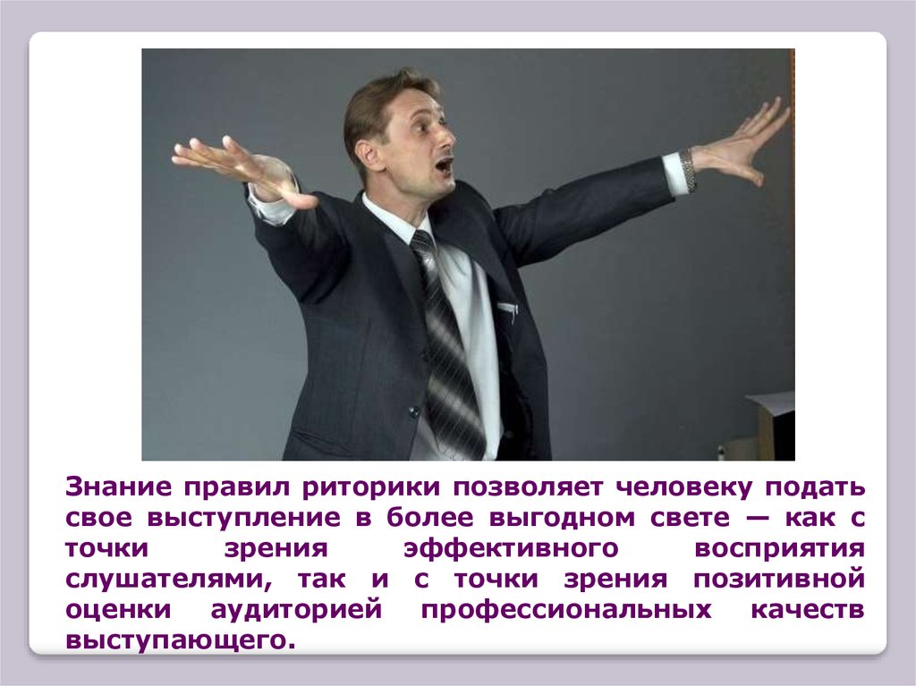 Знание правил риторики позволяет человеку податьсвое выступление в более выгодном свете — как с