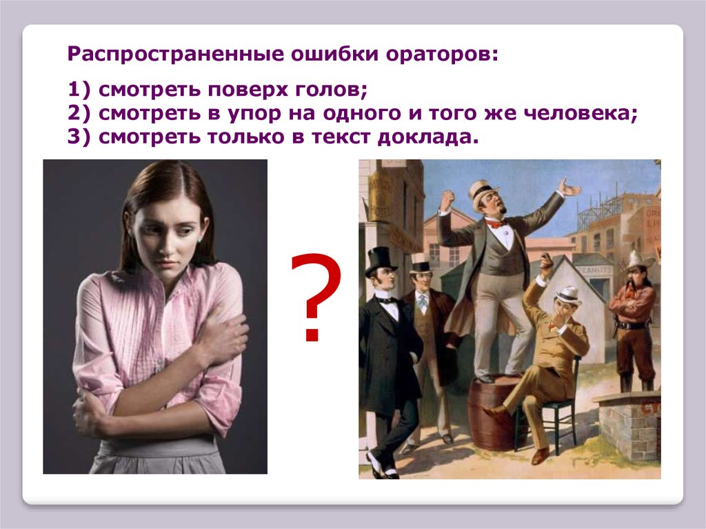 Распространенные ошибки ораторов:1) смотреть поверх голов;