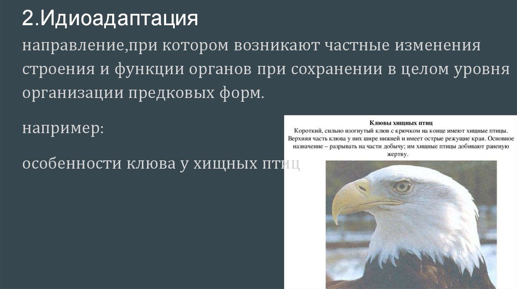 2.Идиоадаптациянаправление,при котором возникают частные изменения