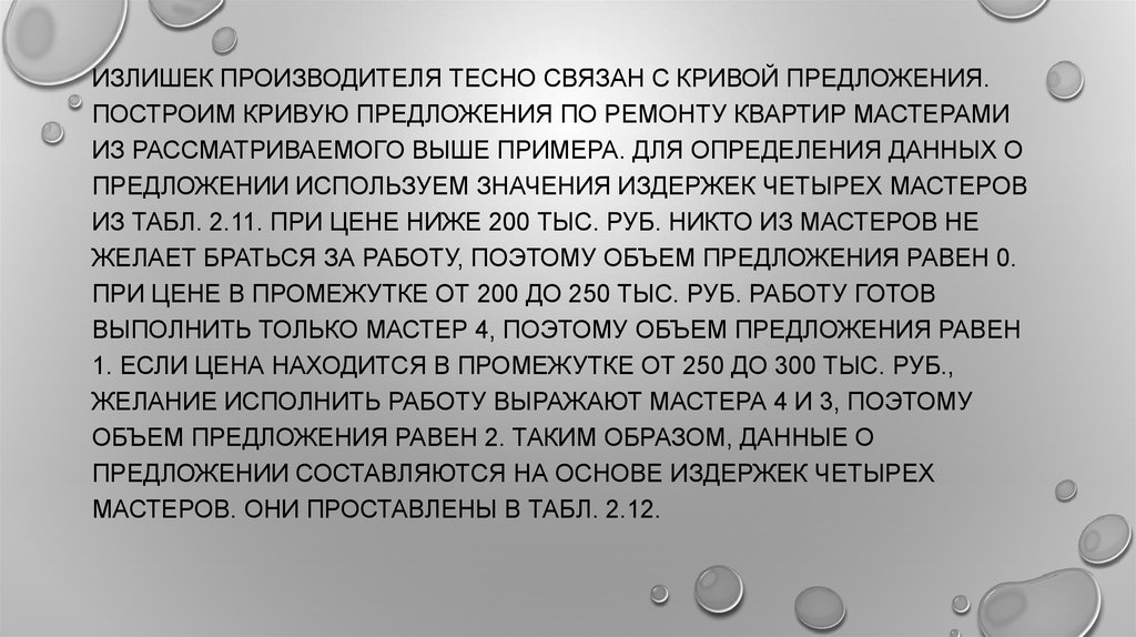ИЗЛИШЕК ПРОИЗВОДИТЕЛЯ ТЕСНО СВЯЗАН С КРИВОЙ ПРЕДЛОЖЕНИЯ.ПОСТРОИМ КРИВУЮ ПРЕДЛОЖЕНИЯ ПО РЕМОНТУ КВАРТИР МАСТЕРАМИ