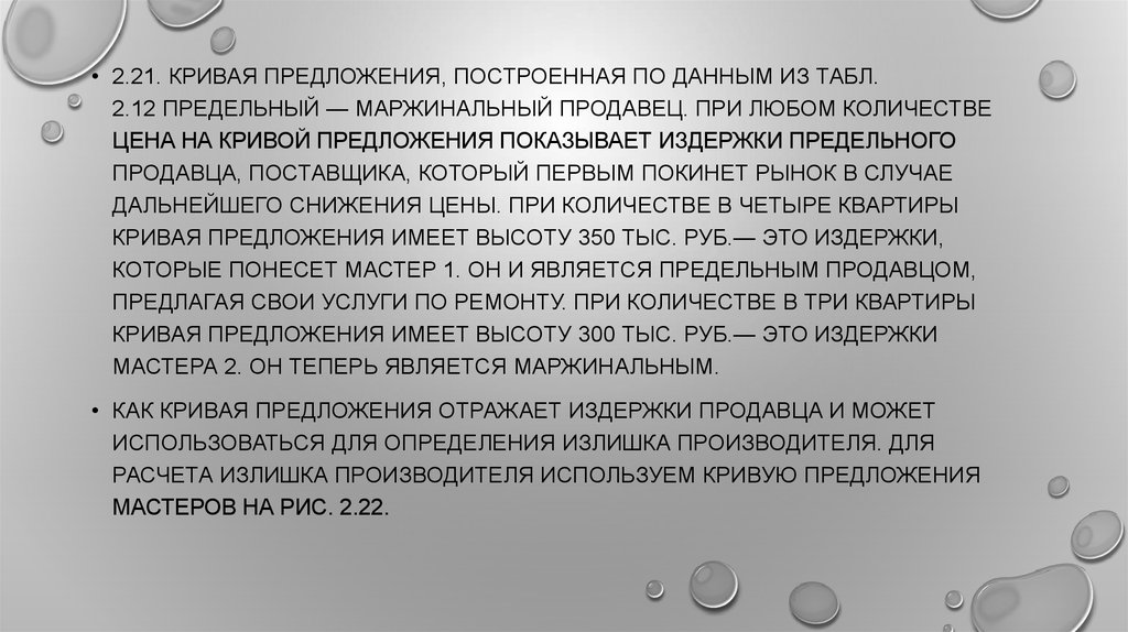 • 2.21. КРИВАЯ ПРЕДЛОЖЕНИЯ, ПОСТРОЕННАЯ ПО ДАННЫМ ИЗ ТАБЛ.2.12 ПРЕДЕЛЬНЫЙ — МАРЖИНАЛЬНЫЙ ПРОДАВЕЦ. ПРИ ЛЮБОМ КОЛИЧЕСТВЕ
