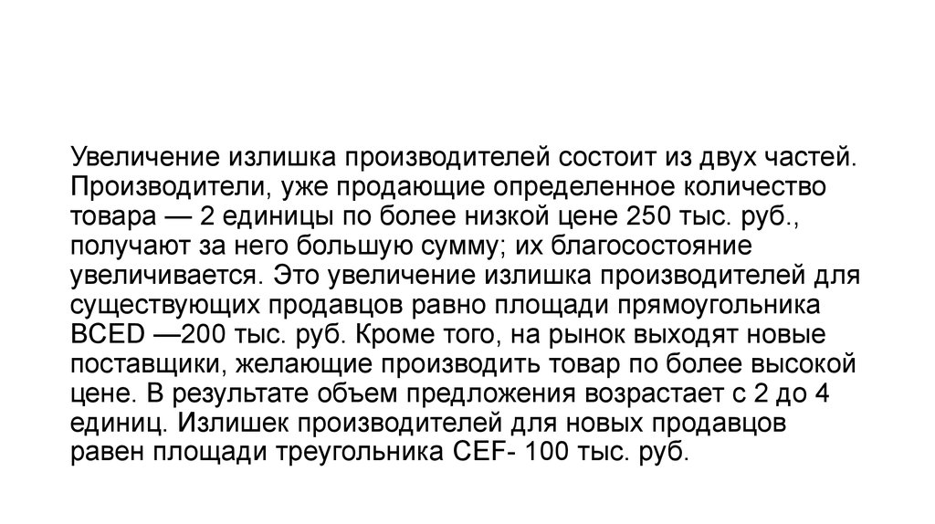 возрастает с 250 до 350 тыс. руб., излишек производителей