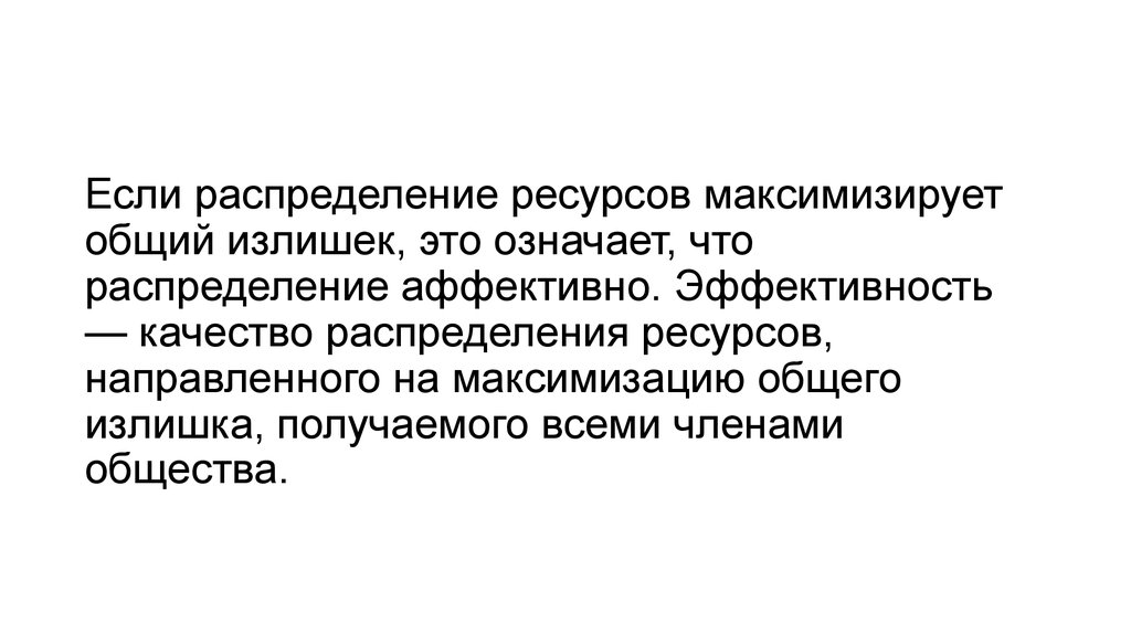 Если распределение ресурсов максимизируетобщий излишек, это означает, что