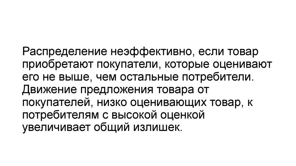 Распределение неэффективно, если товарприобретают покупатели, которые оценивают