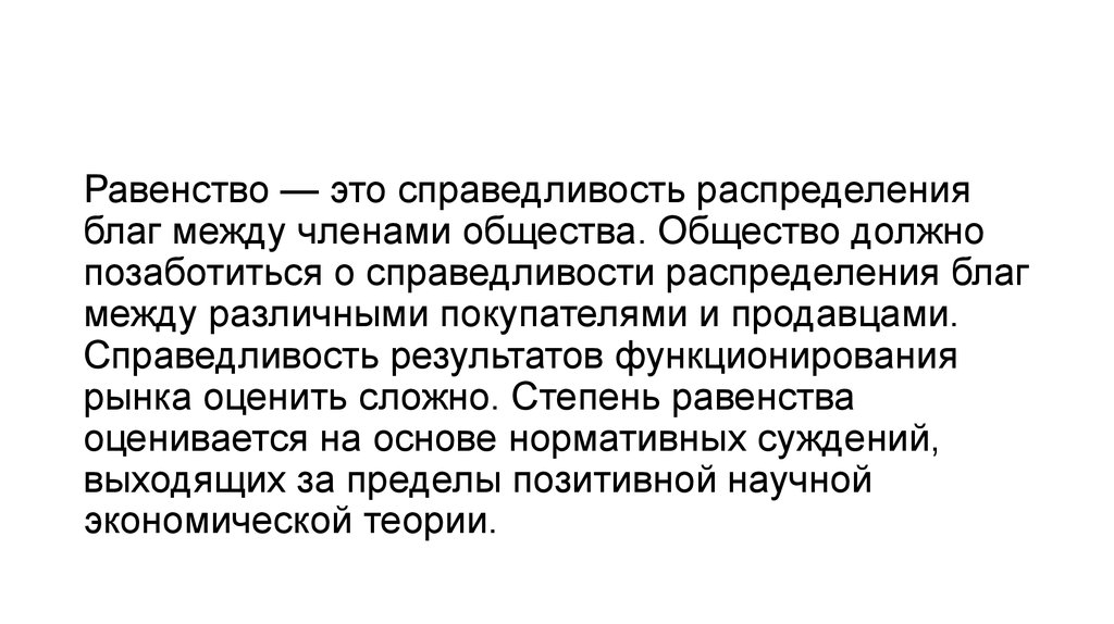 Равенство — это справедливость распределенияблаг между членами общества. Общество должно