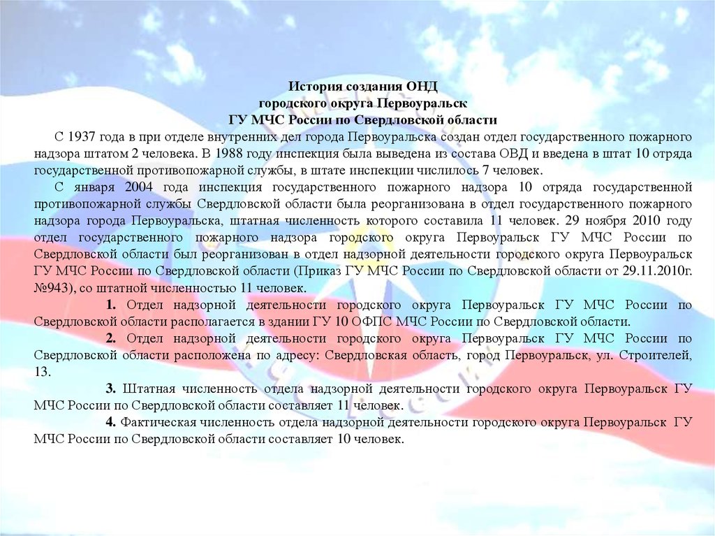 Свердловской области был реорганизован в отдел надзорной деятельности городского округа Первоуральск