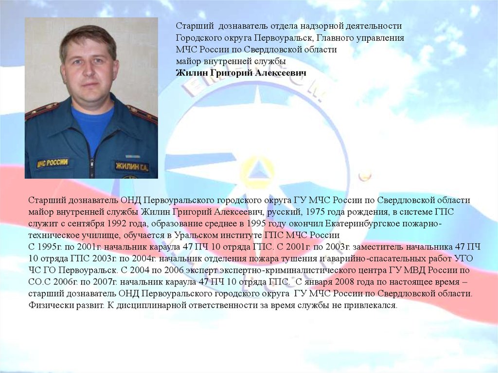 службы Жилин Михаил Алексеевич, русский, 1980 года рождения, в системе ГПС служит с 1998 года,