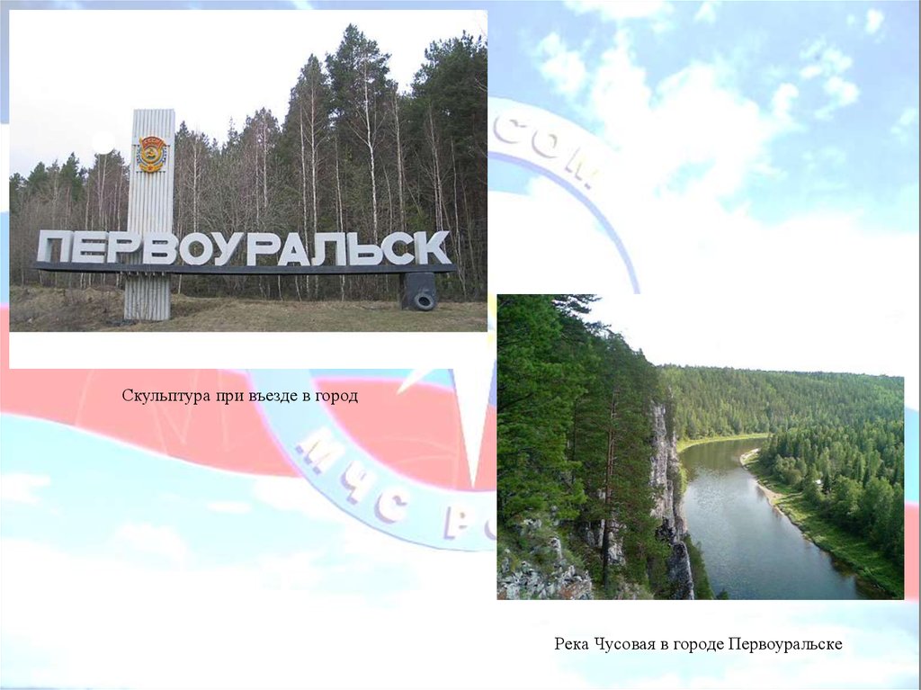 Скульптура при въезде в городРека Чусовая в городе Первоуральске