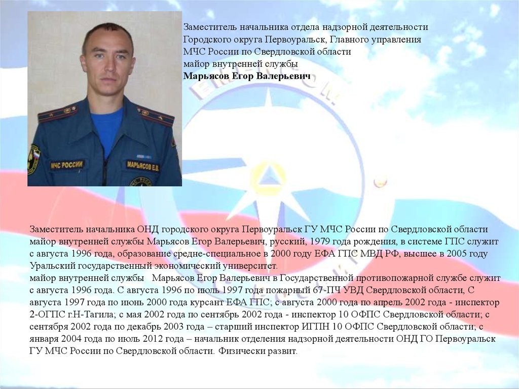 майор внутренней службы Марьясов Егор Валерьевич, русский, 1979 года рождения, в системе ГПС служит