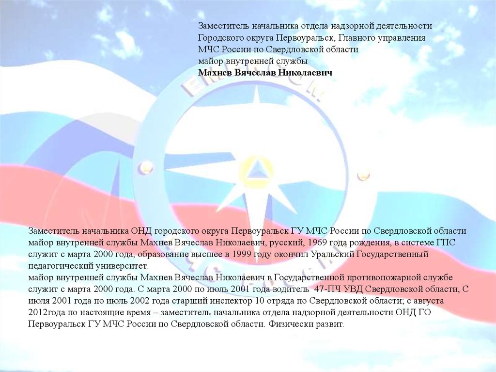 майор внутренней службы Махнев Вячеслав Николаевич, русский, 1969 года рождения, в системе ГПС