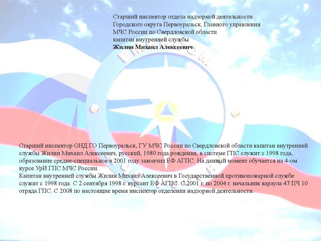 Старший инспектор отдела надзорной деятельностиГородского округа Первоуральск, Главного управления