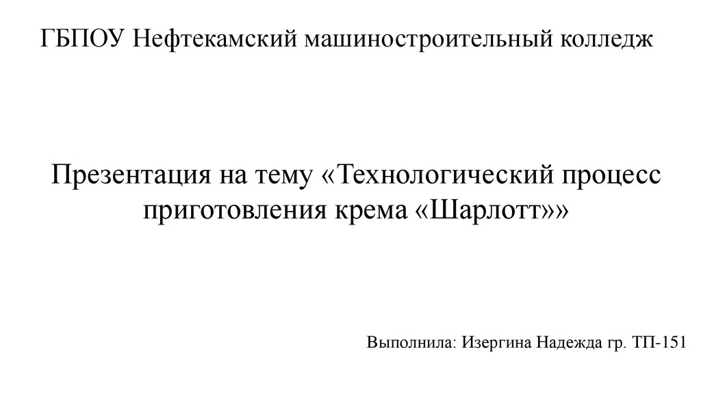 Презентация на тему «Технологический процессприготовления крема «Шарлотт»»