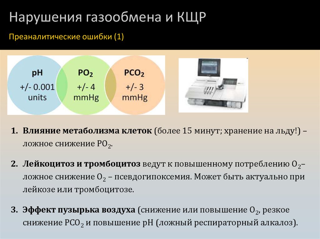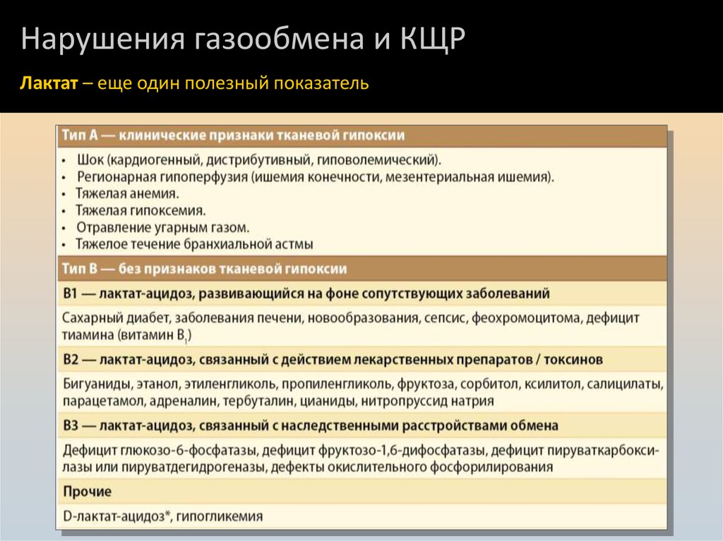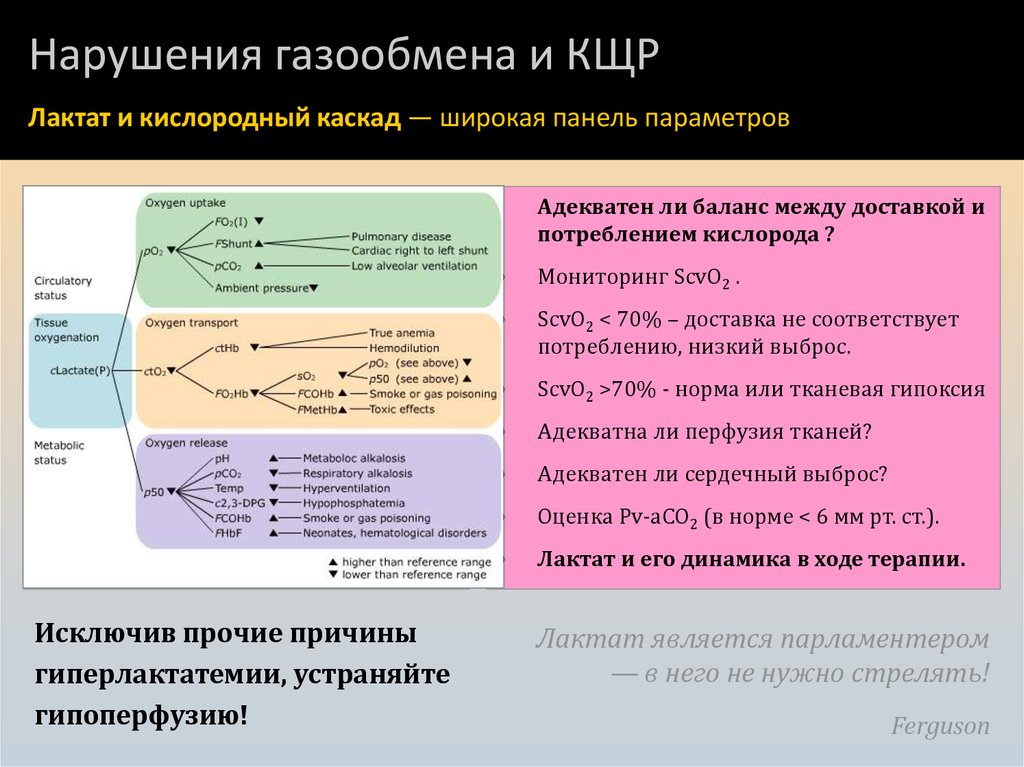 Нарушения газообмена и КЩРЛактат и кислородный каскад — широкая панель параметров