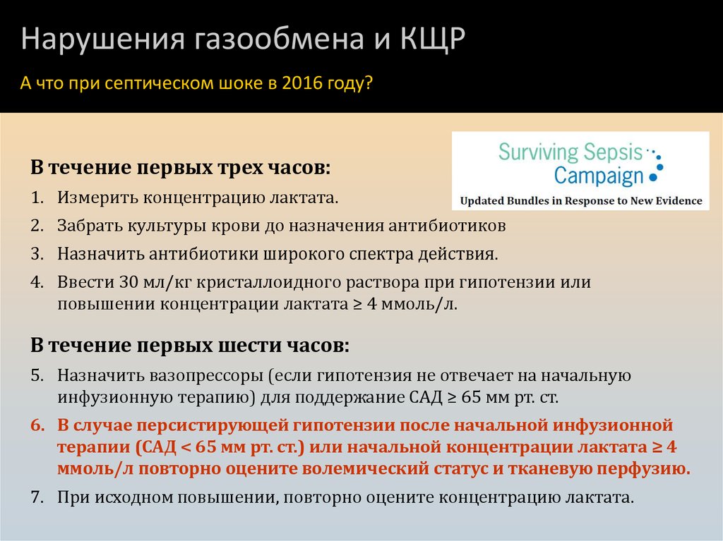 Нарушения газообмена и КЩРА что при септическом шоке в 2016 году?