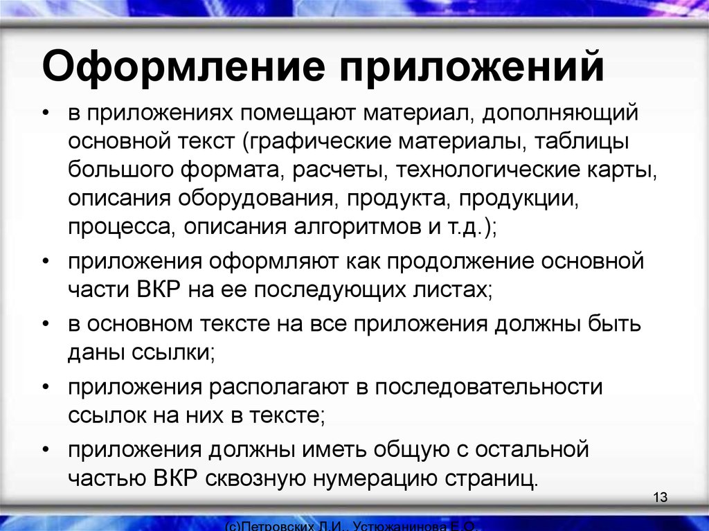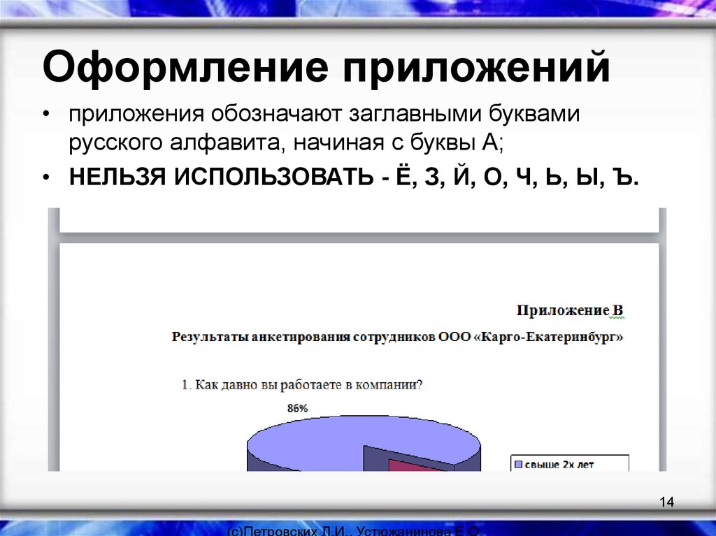 Оформление приложений• в приложениях помещают материал, дополняющий
